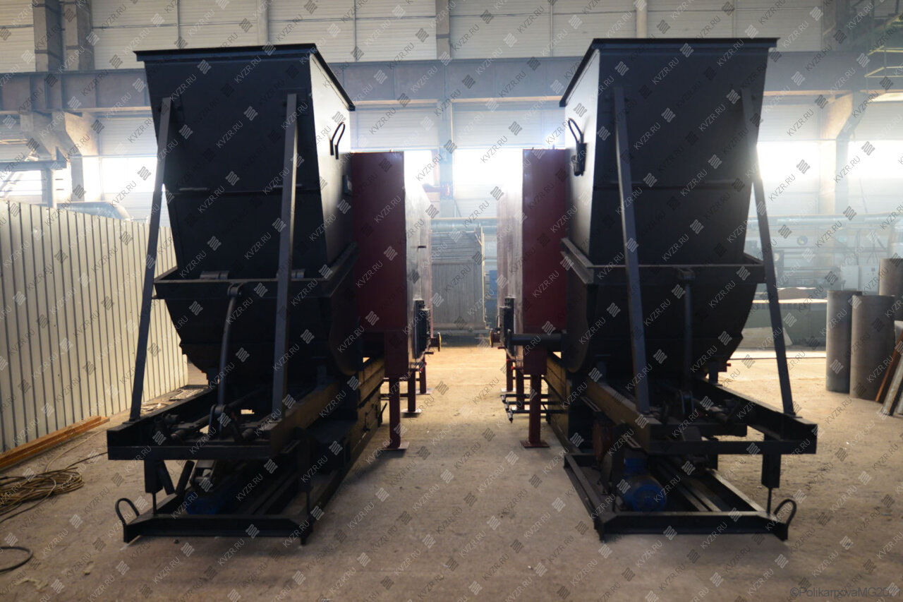 Котлы КВм водогрейные с топкой с опрокидывающими колосниками с задним, средним либо передним выгрузом шлака. Конструкция данных котлов выполнена двухблочной; блок котла и ручная топка с поворотными колосниками РПК. Водогрейные котлы с топкой с опрокидывающимися колосниками - КВм-0,4, КВм-0,5, КВм-0,6, КВм-0,8, КВм-1,1, КВр-1,25, КВм-1,4, КВм-1,6, КВм-2,0, КВм-2,5.