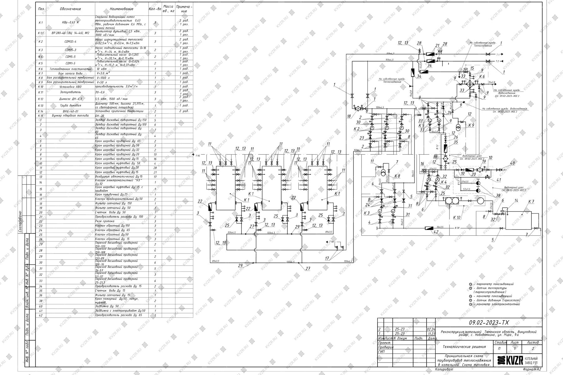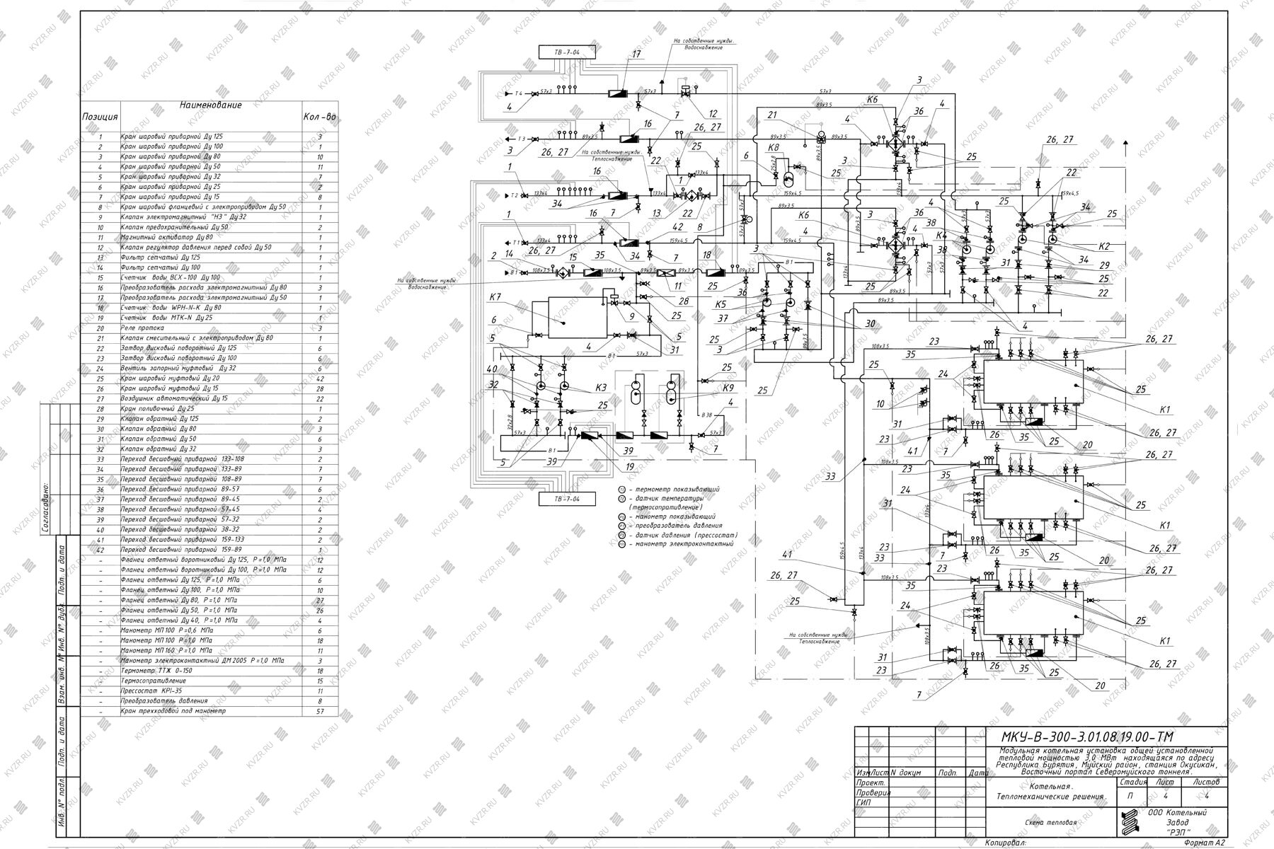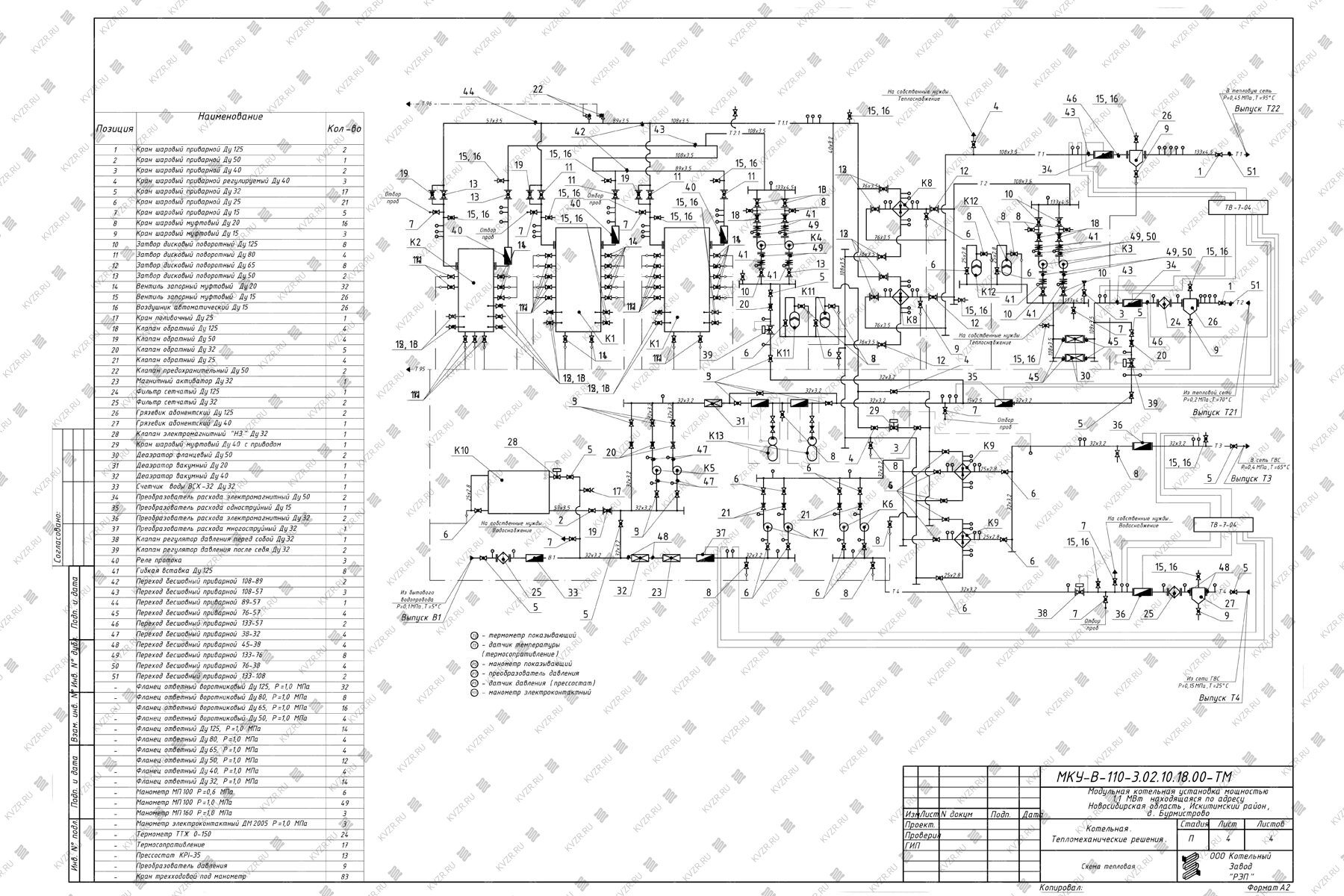 Арматура, электрооборудование и электропроводка имеют маркировку, соответствующую условным обозначениям на схемах тепловой, принципиальной и электрической соединений.