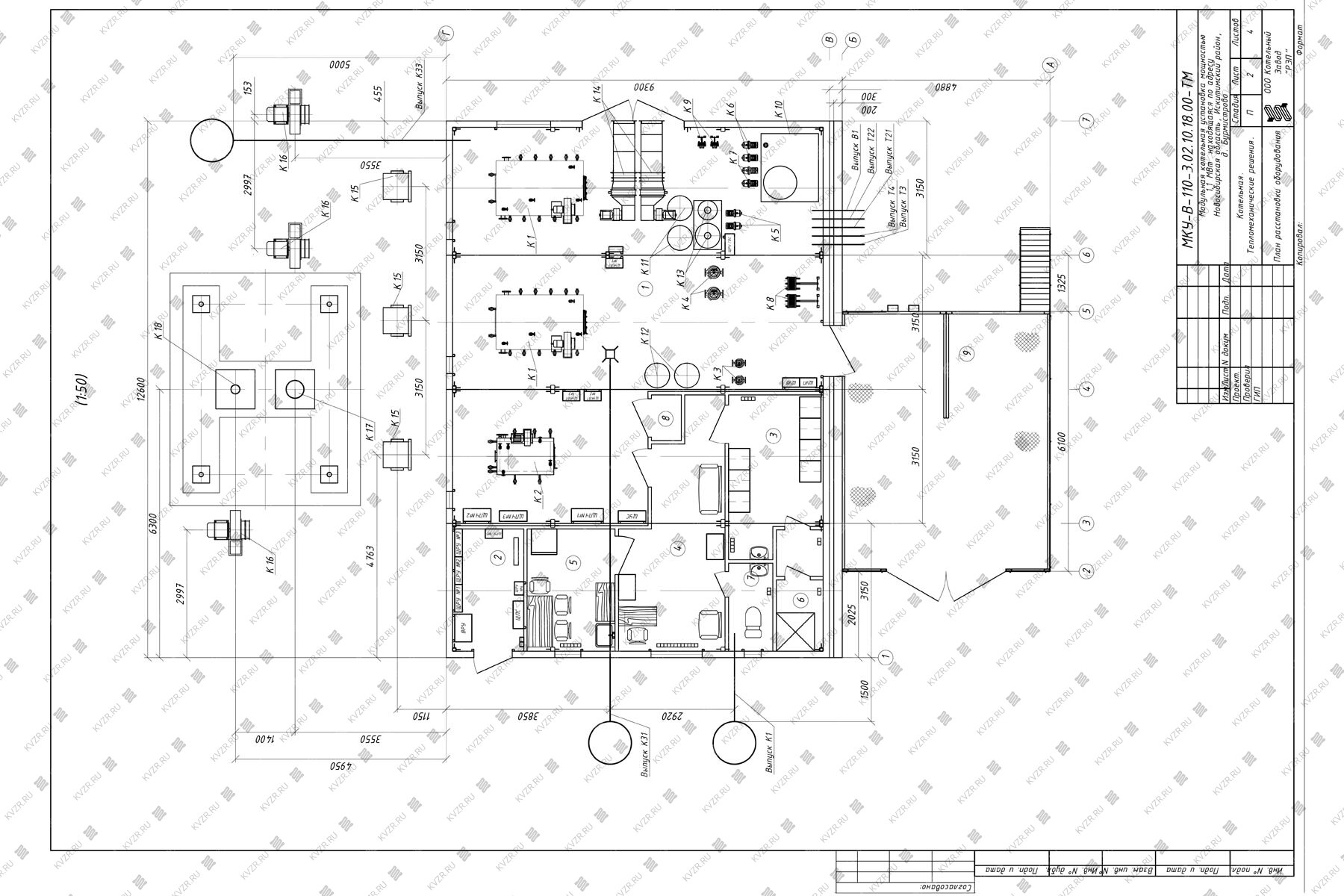 Исходная вода из хозяйственно питьевого водопровода В1 по трубопроводу подается в бак запаса воды К10. Из бака запаса вода поступает на подпитку сетевого контура. Повышение давления подпиточной воды осуществляется с помощью двух насосов К5 (один насос резервный).