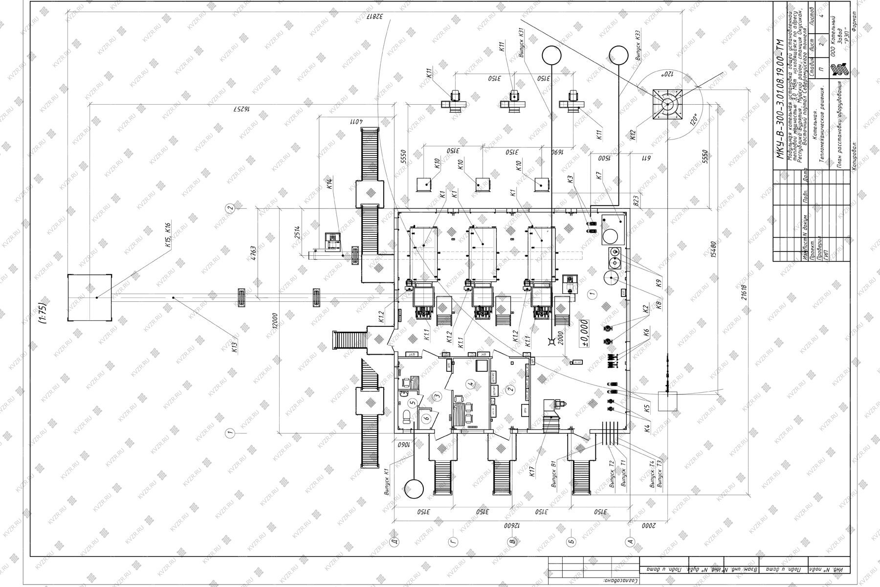 Количество тепла поступающего в сеть ГВС, регулируется количественно-качественным методом за счет изменения расхода теплоносителя путем автоматического управлением работой циркуляционных насосов котлового контура с поддержанием постоянного давления трубопроводе Т3 и поддержанием постоянной температуры в трубопроводе Т3 путем управления подмеса воды в обход теплообменников К6 сразу на выход потребителю через смесительный клапан с электроприводом поз.21.